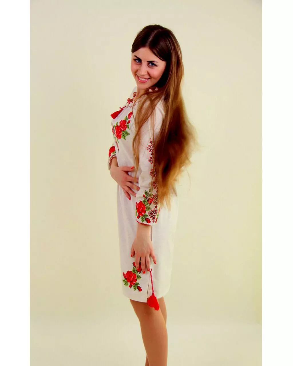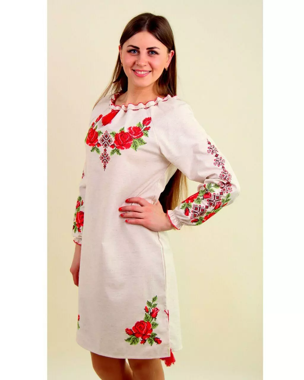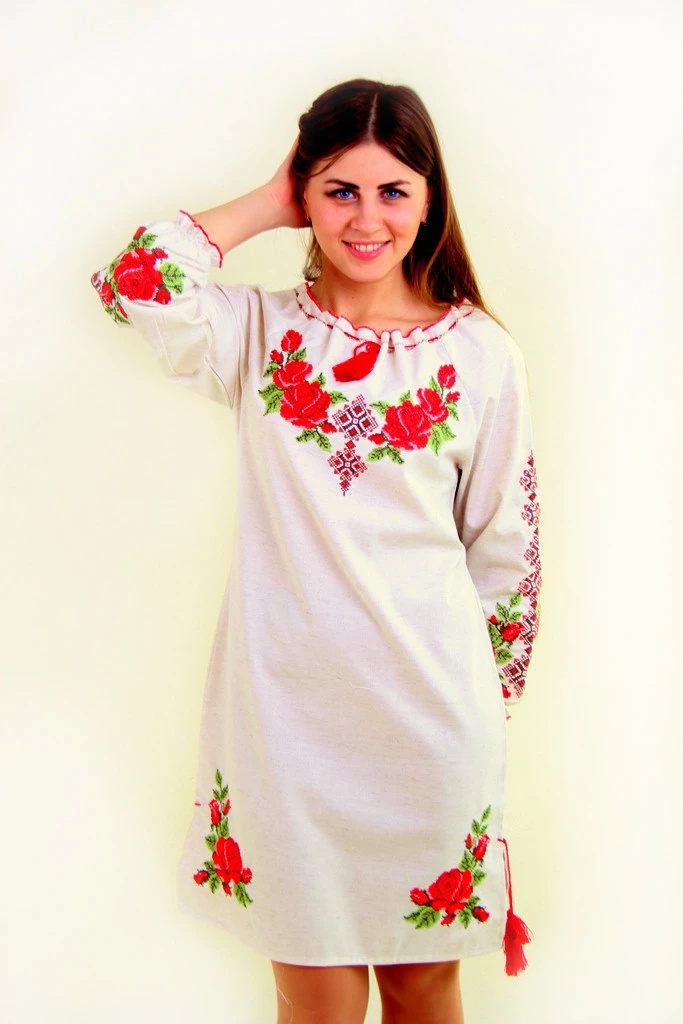 Вишукана вишиванка "Зоряна" з довгим рукавом на гумці. Вишита спеціальними якісними нитками, які призначені забезпечувати яскравість і стійкість вишивки при постійному використанні. Дуже ніжне поєднання пишних троянд і геометричного візерунка!